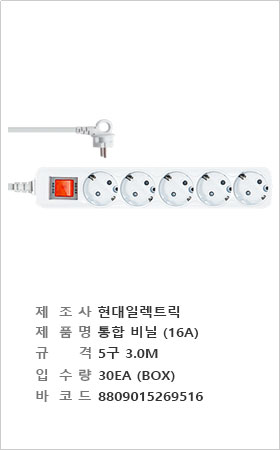 멀티탭:일반접지/ 개별스위치 "비닐포장"